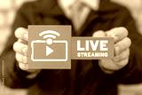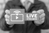 Concept of live streaming social media web network. Broadcast online stream video and music. Internet marketing. Smartphone live streaming technology.
