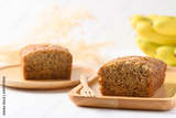 Banana bread on wooden plate with fork ready to eating