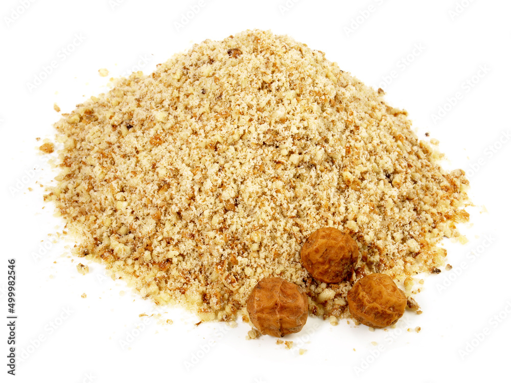 Ground Earth Almonds - Organic Tigernuts on white Background