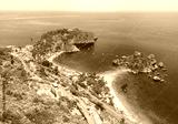 Taormina (Sicilia, Italy) - A historical center view of the touristic city in province of Messina, Sicily island, during the summer, famous for Isola Bella beach and the old theatre