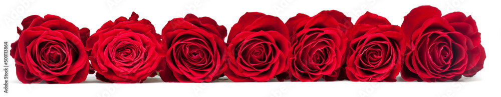 beautiful close-up red rose over white background