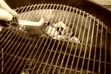 Rostiger Grillrost mit der Drahtbürste reinigen