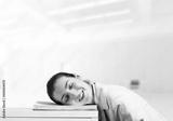 Exhausted business woman sleeping on desk