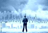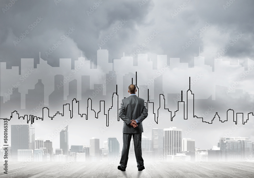 Motivation and inspiration concept with modern cityscape and businessman observing it