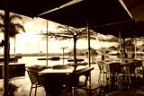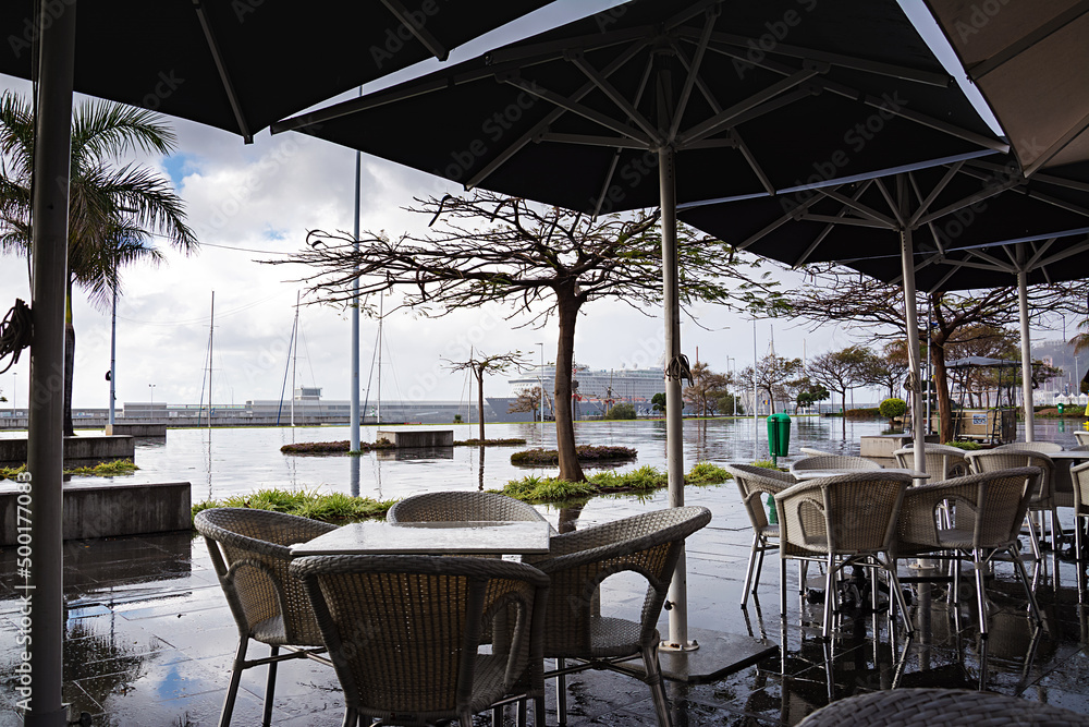 Urban landscape, embankment. Funchal city street with after rain. Madeira Island