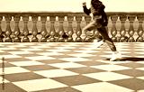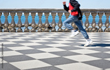 Happy child runs on the famous Mascagni terrace (Italy - Tuscany - Livorno city) - Unrecognizable person