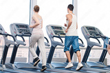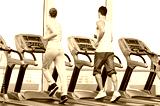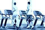 Woman and man at the gym exercising.