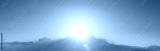 Bright yellow sun over the clouds. Bright orange sunrise on a summer morning. Sunny sky background