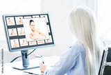 Young Woman Works at Home Office Using Computer. Workplace of Female Entrepreneur, Freelancer or Student. Remote Work and Education Concept.