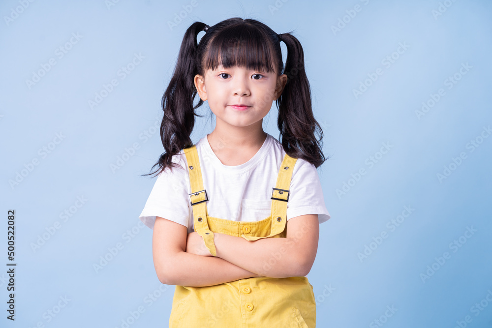 Portrait of Asian child posing on blue background