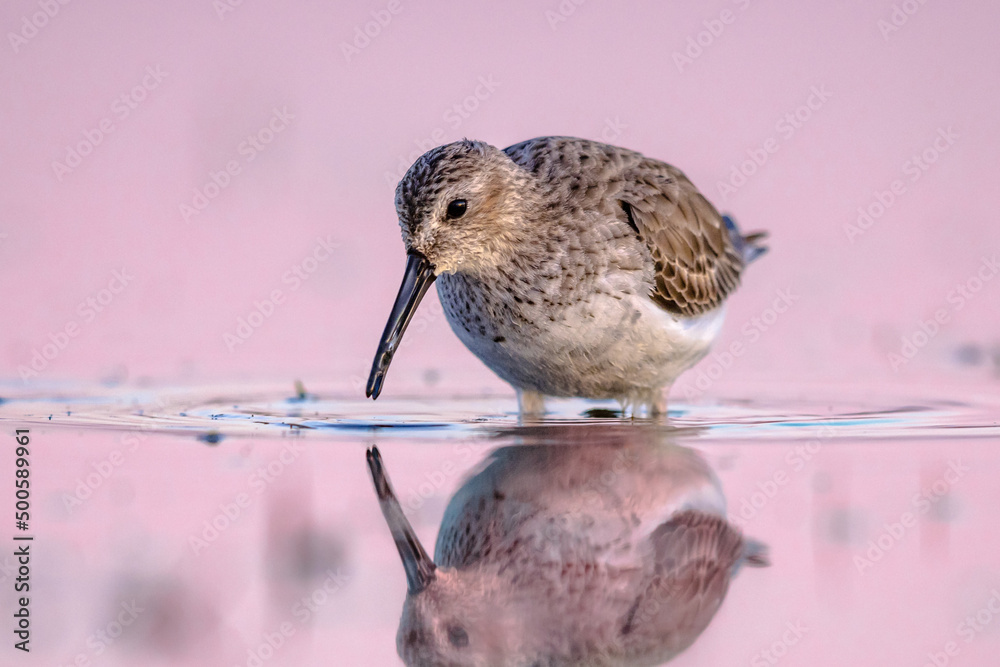 Dunlin in Wetland against bright background