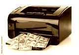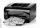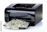 Printer printing fake dollar bills isolated on white