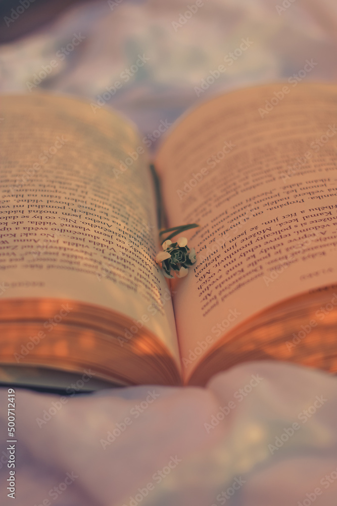 Books spring and sun warm light