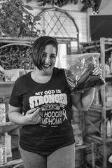Latina woman with cancer looking at smiling camera after cutting her hair for donation