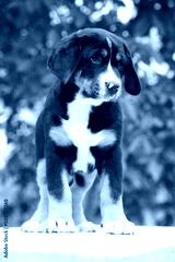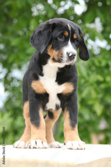 Amazing puppy standing on the table
