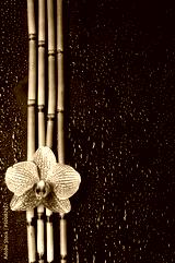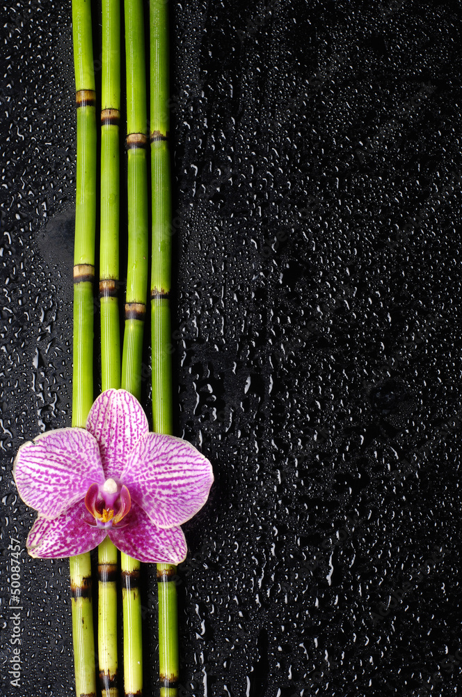 pink orchid with bamboo grove on black
