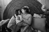 Top view of a mother and her daughter laughing cheerfully