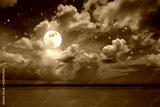 Night stars sky and full moon on Caribbean sea.
