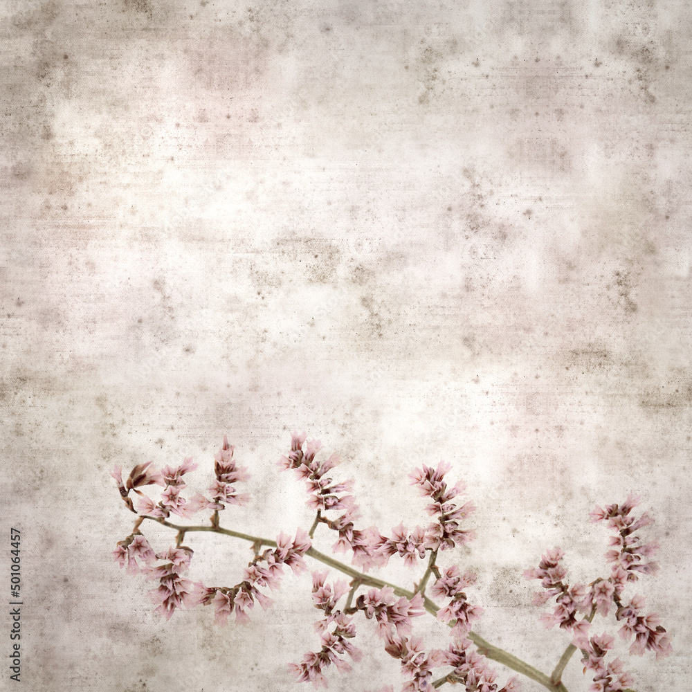 square stylish old textured paper background with pale pink flowers og Limonium pectinatum sea rosemary