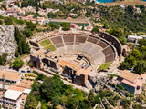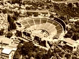 Taormina, Sicily, Italy. Aerial drone view of the greek theater.
