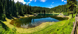 Carezza lake, Dolomites, Trentino Alto Adige, Italy. Panorama