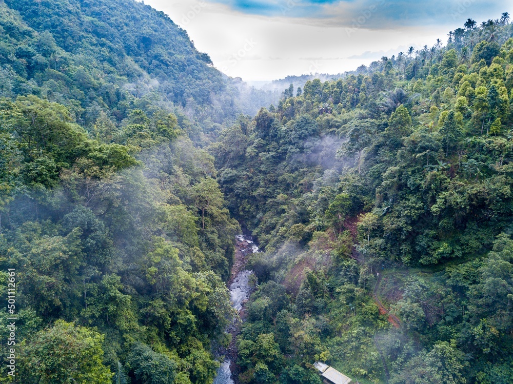 Sekumpul waterfalls, Bali, Indonesia. Aerial drone view.