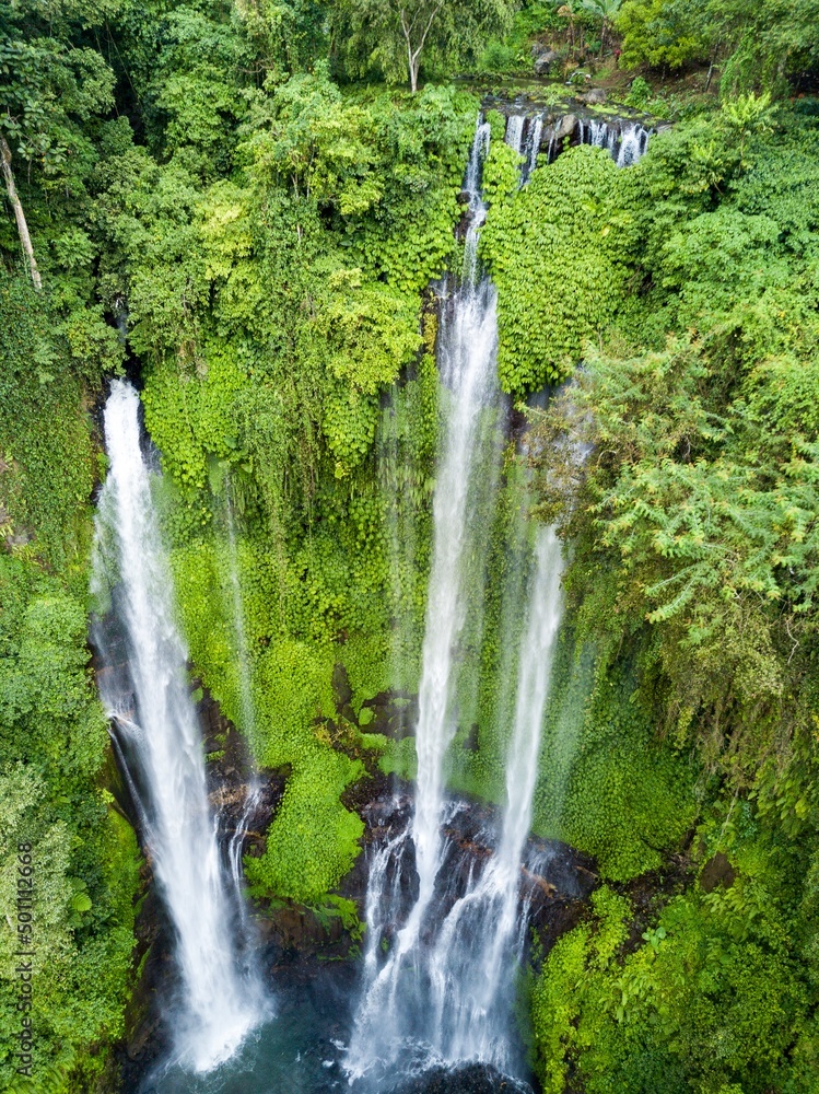 Sekumpul waterfalls, Bali, Indonesia. Aerial drone view.