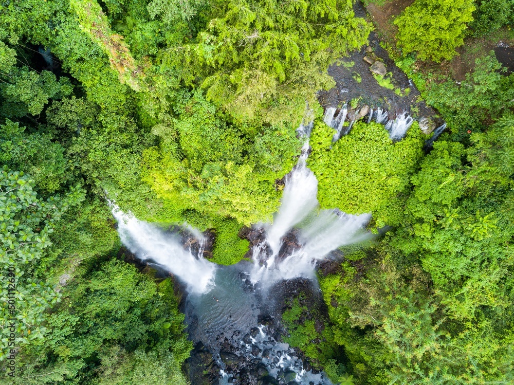 Sekumpul waterfalls, Bali, Indonesia. Aerial drone view.