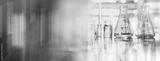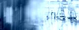 glass flask and vial chemistry science research lab and colorful abstract banner background