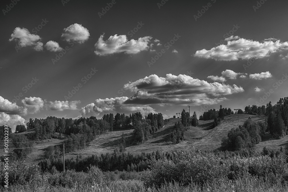 Dramatic summer black and white scenic with ski slopes