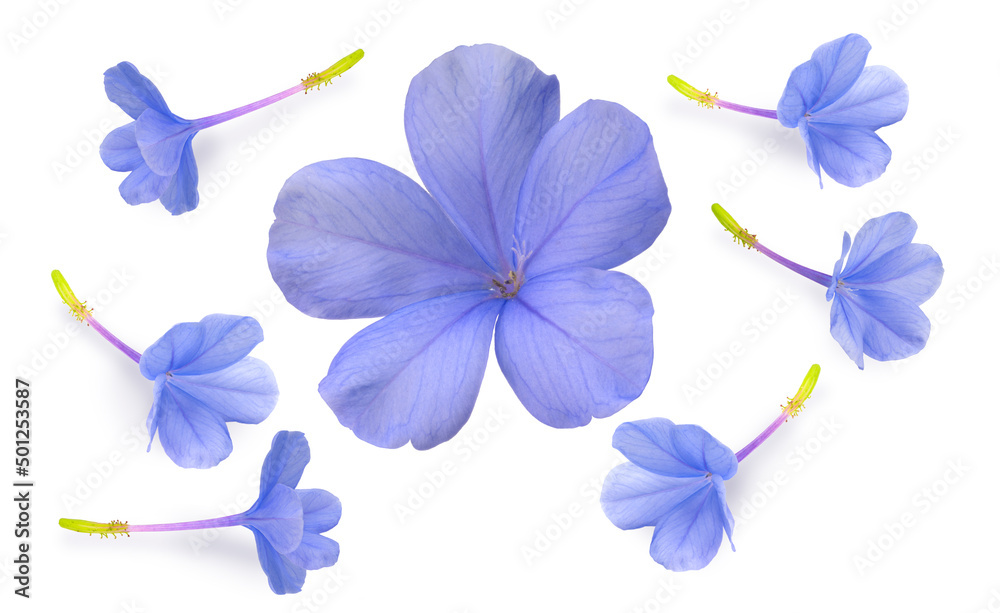 Blue plumbago flower isolated on white background, Plumbago or cape leadwort flower bouquet on white With clipping path.