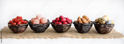 Assorted dried fruits and berries in sugar. Oriental sweets..