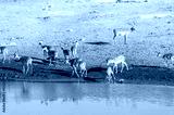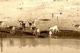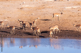 A group of Impalas -Aepyceros melampus- drinking from a waterhole in Etosha National Park, Namibia.