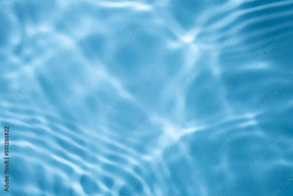 Blurred Transparent blue colored clear water surface texture with splashes. trendy abstract nature background