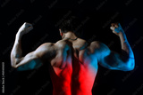man's lower back pain spin hurt, muscle man body exercise workout in fitness gym