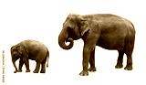 Indian elephant with baby isolated picture. Photo with the asian elephant family.