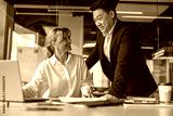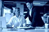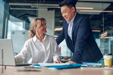executives discussing during a meeting. Asian business man is helping her colleague with work.