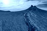 Mud volcano in mountains. Amazing natural phenomenon