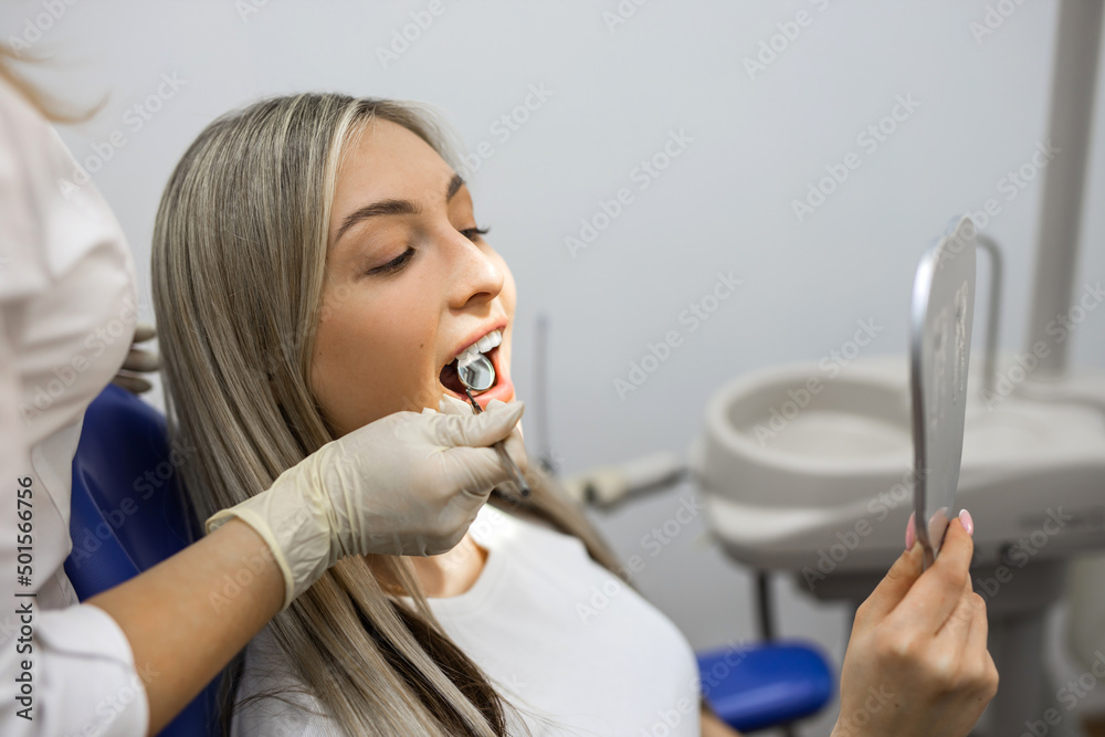 portrait of a beautiful young woman at a dentist appointment