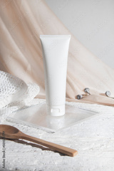 mockup of medical skin care bottle cosmetic tube of beauty makeup facial, treatment cleanser face foam, beauty healthcare branding packaging
