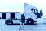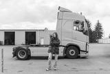 Caucasian young woman driving truck. trucker female worker, transport industry occupation