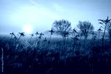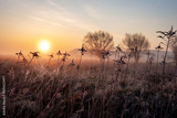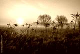 Wierzby we mgle o zachodzie słońca
