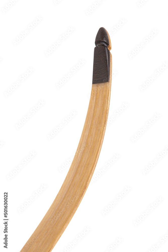 Close-up detail of a light onion lasic bow. Ancient weapons in modern execution. Isolate on a white back.