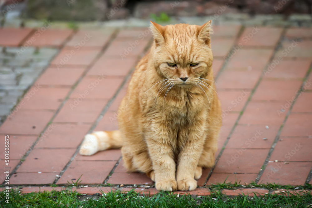 Eine rotbraune Katze mit einem schmollenden Gesichtsausdruck.