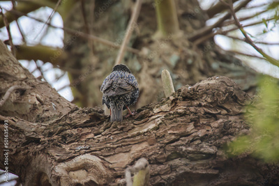 Auf einem Baum in der Nähe der Bruthöhle ist ein Star, Singvogel.