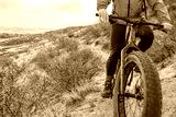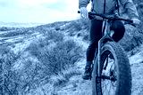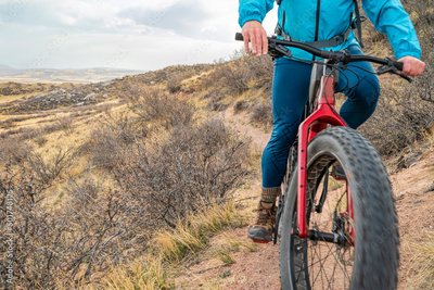 riding fat mountain bike on a single track trail in northern Colorado grassland, early spring scenery in Soapstone Prairie Natural Area near Fort Collins