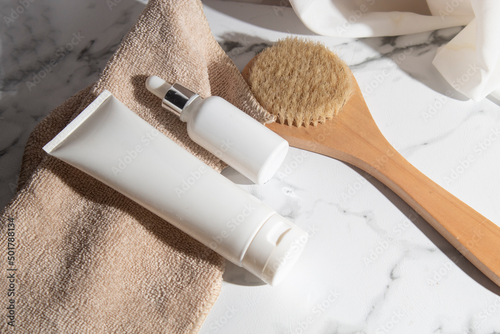 mockup of medical skin care bottle cosmetic tube of beauty makeup facial, treatment cleanser face foam, beauty healthcare branding packaging