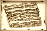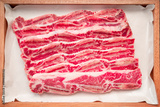 Cross Cut Short Ribs beef on wooden plate, Beef Short Ribs (Sliced) on wooden background.