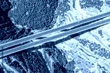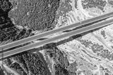 Aerial view on highway bridge in the mountain. Drone, copter view.