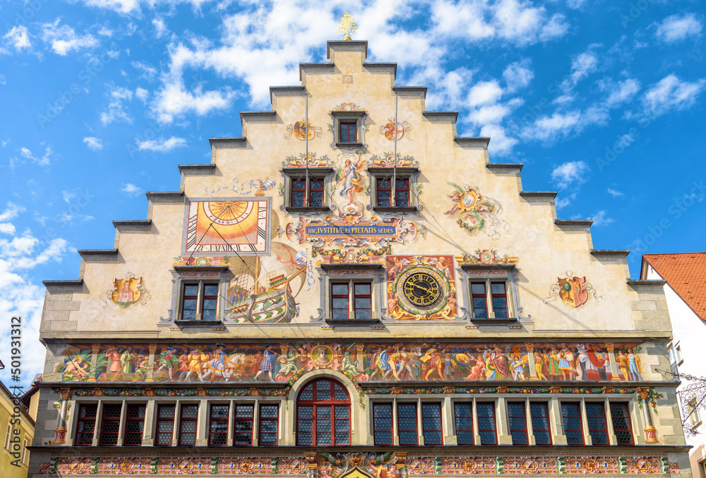 Old Town Hall of Lindau, Germany. Beautiful medieval house with fresco.